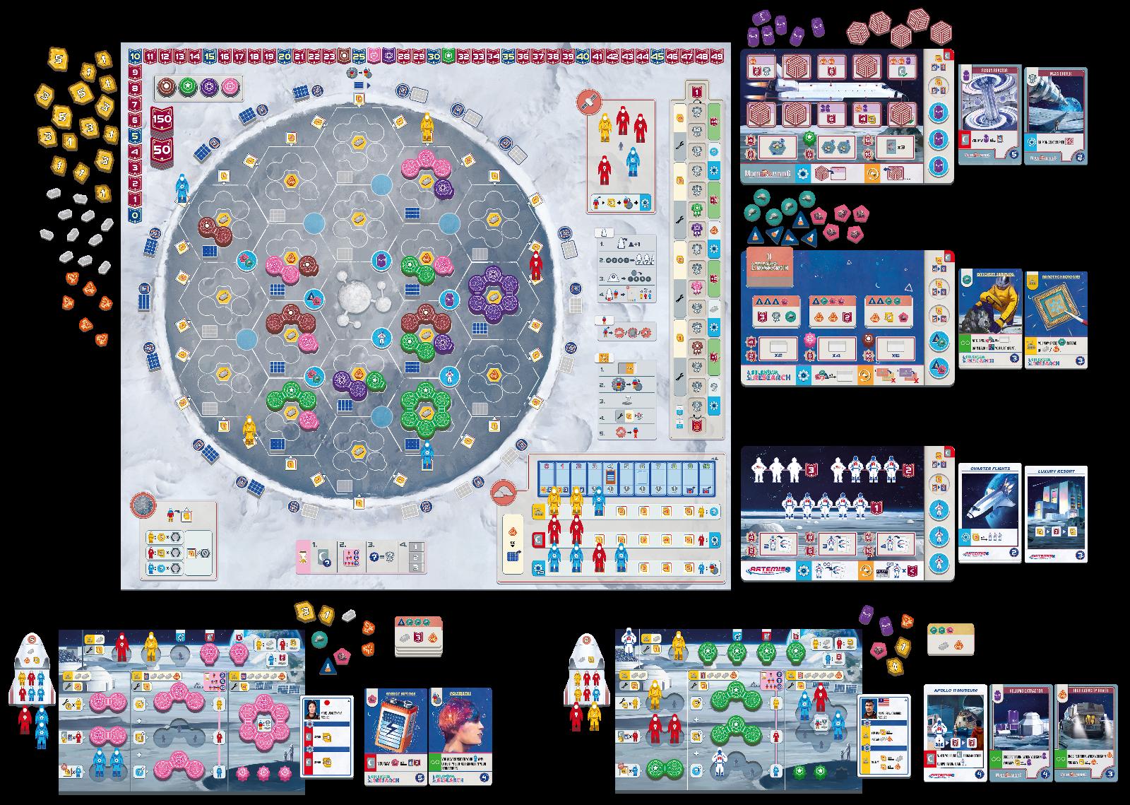 Na szczególną uwagę zasługuje obecność aż 7 unikalnych korporacji – w każdej rozgrywce wybierane są tylko 3 z nich, co pozwala na aż 35 różnych kombinacji i sprawia, że każda partia jest niepowtarzalna. Gracze będą zarządzać zespołami Inżynierów, Naukowców i Techników, rywalizując o najlepsze pola na planszy, budując struktury, realizując projekty i podnosząc reputację swojej agencji kosmicznej.